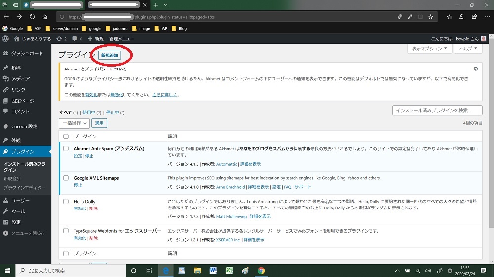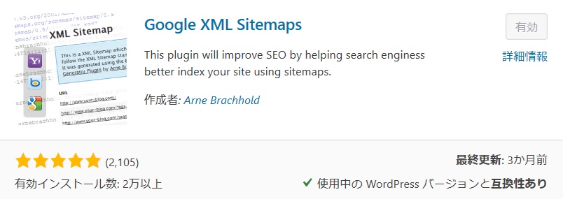 1.プラグイン「Google XML Sitemaps」をインストールし、有効化する