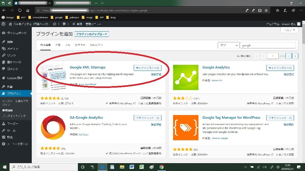 もちろん 「Google XML Sitemaps」 と入力して検索してもいい。