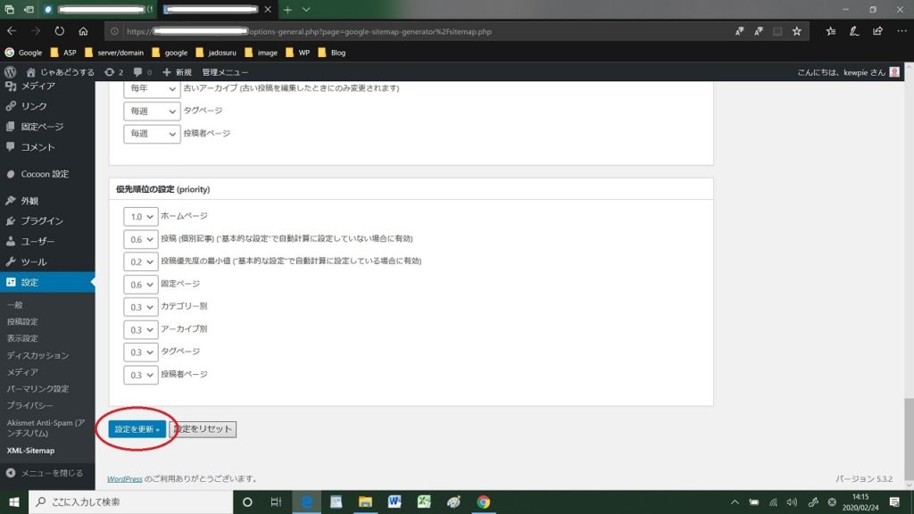 - 「Google XML Sitemaps」を設定する。(基本的設定や投稿の優先順位、サイトマップを作成しないカテゴリーや記事の指定など)